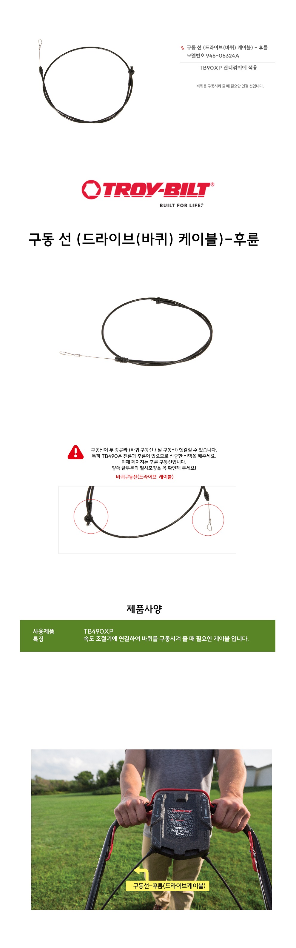 구동선(드라이브케이블) 후륜-TB490XP