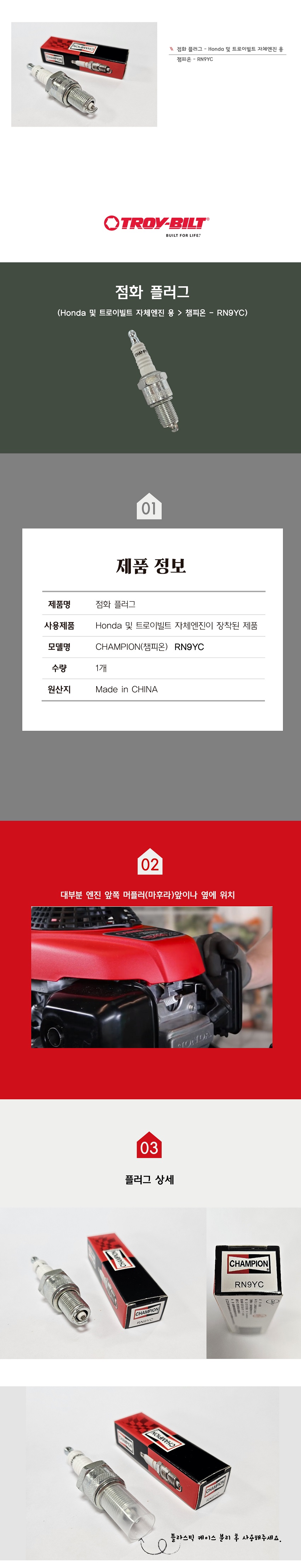 > 점화플러그 - 챔피온( RN9YC ) : 혼다,자체엔진용